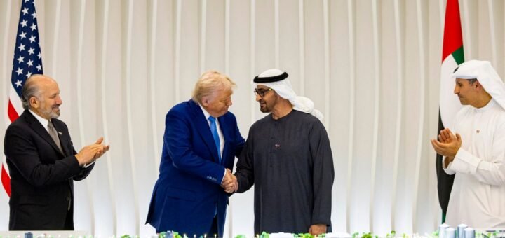 ประธานาธิบดีโดนัลด์ ทรัมป์ ของสหรัฐฯ ปิดท้ายการทัวร์ตะวันออกกลางในอาบูดาบี หลังจากลงนามข้อตกลงมูลค่าหลายพันล้านดอลลาร์อีกชุดหนึ่ง ขณะเดียวกันก็ได้รับคำมั่นสัญญาการลงทุนมูลค่า 1.4 ล้านล้านดอลลาร์จากสหรัฐอาหรับเอมิเรตส์ ประธานาธิบดีโดนัลด์ ทรัมป์ ของสหรัฐอเมริกา (ที่ 2 จากซ้าย) และชีค โมฮัมเหม็ด บิน ซายิด อัล-นาห์ยาน ประธานาธิบดีสหรัฐอาหรับเอมิเรตส์ (ที่ 2 จากขวา) จับมือกันหลังลงนามในข้อตกลงการลงทุน ที่อาบูดาบี เมื่อวันที่ 15 พฤษภาคม (Photo by Ryan CARTER / UAE...